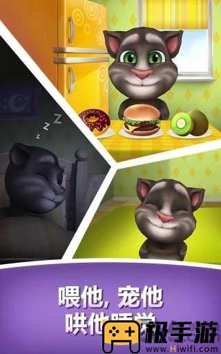 当你打开游戏,汤姆会从箱子里跳出来,好奇地打量着这个世界。你可以给它喂食,陪它玩耍,甚至还能给它洗澡。每当汤姆饿了,它会跑到厨房,用那萌萌的声音说:“喵喵,我饿了。”这时,你只需要把食物放到它的嘴里,它就会开心地吃起来。