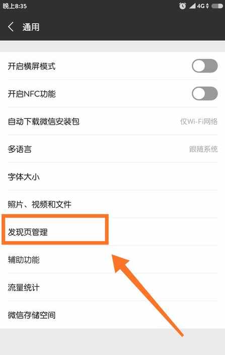 4. 进入通用页面后,找到并点击“发现页管理”。