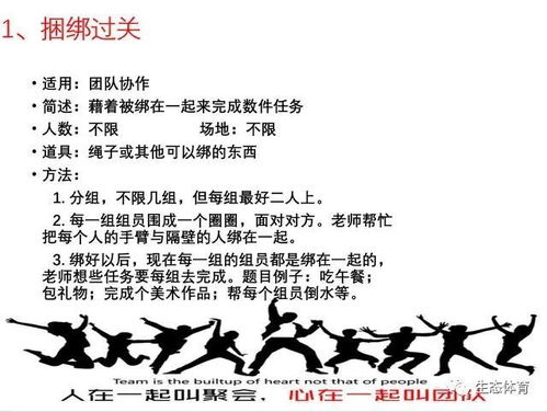在现代社会,团队凝聚力是企业成功的关键因素之一。通过一系列精心设计的团队凝聚力游戏,可以有效提升团队成员之间的沟通、协作和信任,从而激发团队潜能,共创辉煌。本文将为您介绍几种实用的团队凝聚力游戏,帮助您打造一支高效、和谐的团队。