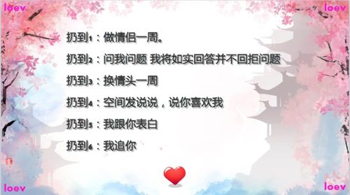 随着互联网的普及,QQ成为了许多人日常沟通的重要工具。在QQ的众多功能中,情侣们尤其喜欢通过一些趣味游戏来增进彼此的感情。其中,QQ情侣掷骰子游戏因其简单易行、趣味性强而受到许多情侣的喜爱。本文将详细介绍QQ情侣掷骰子游戏的规则和惩罚,帮助情侣们更好地享受游戏乐趣。