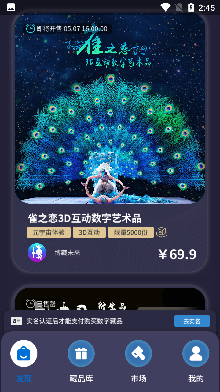 上线首日15:00,“文旅数藏”App将全球限量发行《虎啸图·虎神舞神》3D互动数字艺术品。《虎啸图》是由著名舞蹈艺术家杨丽萍出任总导演并担任主演的国内首个电影级别的舞蹈影视作品,其极具视觉冲击力的美感备受观众好评。《虎啸图·虎神舞神》即以其中“虎”为原型创作,将中国优秀传统文化赋予新时代的理念。此款数字藏品全球限量发行5000份。